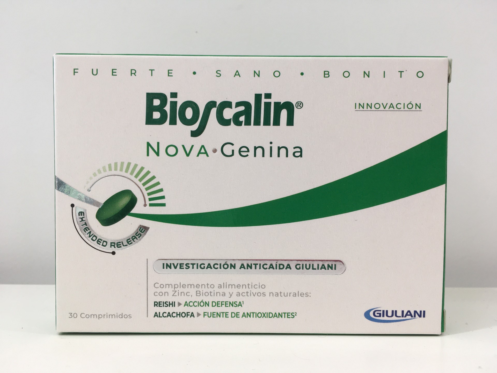 De la Investigación Giuliani, líder en anticaída, nace el nuevo Bioscalin®NOVA·Genina, un complemento alimenticio que cuenta con una combinación de elementos única y diferente, que constituye una ayuda específica en caso de cabello debilitado.