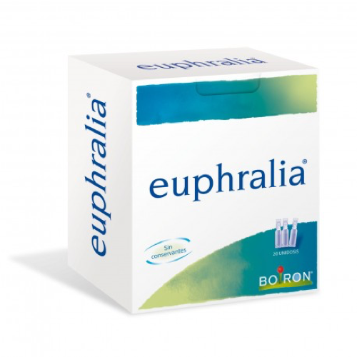 Propiedades: Euphralia se utiliza en adultos o niños a partir de un año en caso de irritación, molestias oculares, o sequedad ocular ligera de origen diverso (esfuerzo ocular prolongado, agua de mar o piscina, fatiga ocular, humo, polvo, aire acondicionado).\r\nCaja con 20 unidosis estériles de 0,4 ml. Sin conservantes\r\nModo de empleo\r\nSeparar una unidosis.\r\nAbrir la unidosis girando la parte superior.\r\nTirar suavemente del párpado inferior hacia abajo manteniendo la mirada hacia arriba. Dejar caer una o dos gotas entre el párpado y el globo ocular, presionando ligeramente la unidosis sin que el envase toque las pestañas o el globo ocular.\r\nMantener a una temperatura inferior a 25ºC.\r\n\r\nPlazo de utilización después de la apertura: no conservar la unidosis una vez abierta. De esta forma, el producto estará estéril en cada utilización.\r\nAplicar 1 ó 2 gotas en cada ojo de 2 a 6 veces al día.\r\nPuede utilizarse en adultos y niños mayores de un año.\r\nPrecauciones de uso:\r\nSe desaconseja el uso de lentillas mientras los ojos están irritados.\r\nSi está utilizando un medicamento en forma de colirio, debe distanciar 15 minutos la utilización de Euphralia.\r\nSi las molestias se mantienen durante más de dos días consulte con su médico.\r\nNo utilizar si al levantarse los ojos están pegados con pus, ni si aparece un dolor fuerte o heridas. En estos casos debe consultar inmediatamente a su médico.\r\nNo utilizar en niños menores de un año.