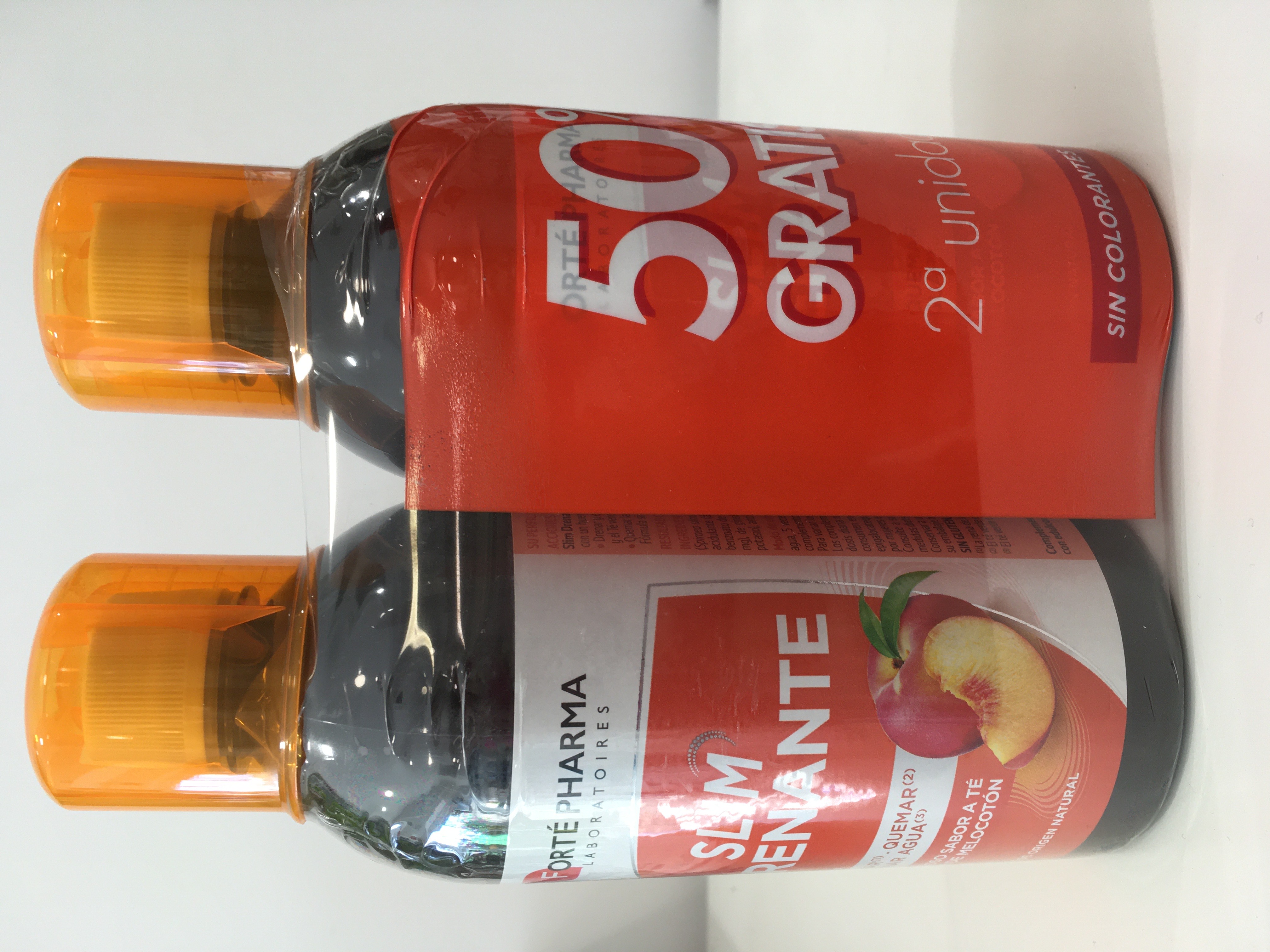 Slim drenante es un complemento alimenticio que asocia reina de los prados, hibiscos, rabillo de cereza, té verde y CactineaTM. El fitotrío de guayaba, alga aosa y ginseng completan la fórmula. Delicioso sabor a té verde de melocotón.\r\n